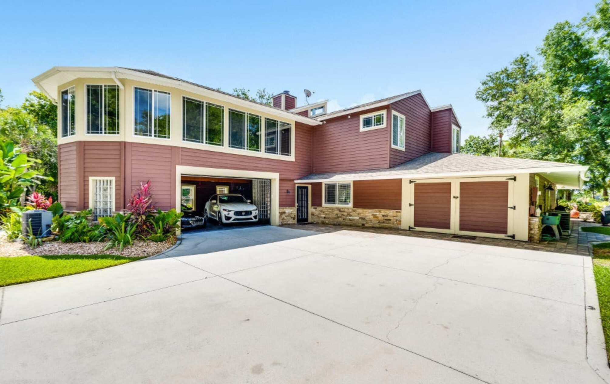 On the second floor, you will discover a second master bedroom complete with a walk-in closet and full bathroom. As as well two other bedrooms that share yet another spacious full bathroom. What makes the second floor so unique is that it has its very own media room with large windows which provide private views of the front of the property. With a built-in media center, 76-inch 3D TV, and wrap-around leather couch that conveys with the property, all you need to do is pop someone popcorn and sit back and be entertained. This room also doubles as an epic music room and hangout space. Life on the river comes with many opportunities from boating, fishing, watching epic sunsets, and seeing Kennedy Space Center launches - and if you have toys you will love the attached and detached garages.