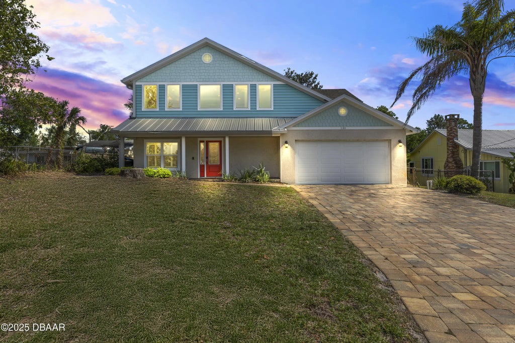 Welcome to a one-of-a-kind meticulously crafted custom pool home, nestled in one of Ormond Beach's most desirable neighborhoods. From the moment you step inside, you'll be swept away by the designer details and rich craftsmanship. Soaring ceilings with tongue-and-groove woodwork, equipped with LED accent lighting, and shiplapped walls frame a stunning great room, anchored by a dramatic staircase that leads to a spacious second family room. The heart of the home—a chef's kitchen—features solid shaker cabinetry, dove-tailed wood drawers, a walk-in pantry, and an oversized granite island perfect for entertaining. A pass-through window opens to the covered poolside lanai, blending indoor and outdoor living seamlessly.The downstairs owner's suite is a peaceful retreat, complete with intricate ceiling details, dual walk-in closets, and a luxurious en-suite bath adorned with custom tilework. French doors lead directly to the pool—perfect for a refreshing midnight swim. Upstairs, a light filled bonus room with plantation shutters overlooks the living spaces below and opens to a breezy second-story covered balcony- ideal for relaxing and enjoying the river breeze from the nearby Halifax River, just one block away. Two upstairs guest bedrooms, one with balcony access and both with cathedral ceilings and walk-in closets, share a private wing and a beautifully appointed bath. A first-floor powder room offers convenience for guests. Outside, the custom heated saltwater pool is a showstopper-complete with submerged granite barstools, a beach entry sun deck, expansive paver patio, and multiple entertaining zones including a fixed bar and a lower tropical deck with fire pit seating. Whether you're hosting guests or enjoying a quiet evening under the stars, this backyard oasis is unforgettable. Additional features include an epoxy-coated two car garage, indoor laundry room, James Hardie concrete siding, built in indoor-outdoor surround sound system, and a full security system. Located just minutes from the beach with strolling distance to Ormond's vibrant arts and entertainment district. The photos are stunning- but this is one you truly have to see to appreciate.