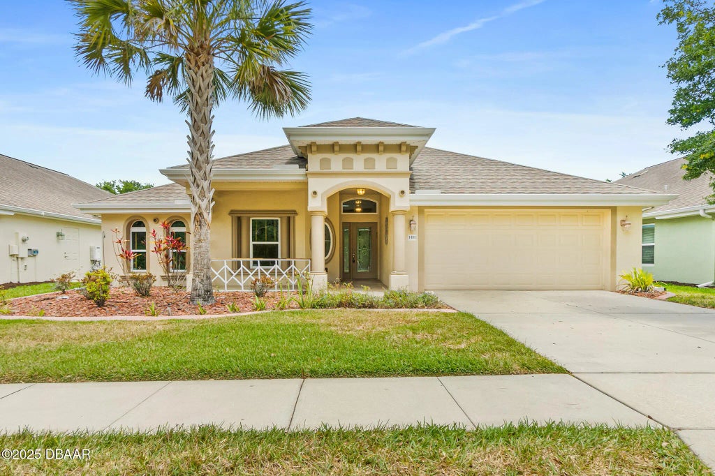 This gorgeous 4-bedroom, 2-bathroom home located in the sought-after MAINTENANCE FREE COMMUNITY of the Villages at Royal Palm features a fantastic modern design, and vaulted ceilings. The spacious open floor plan boasts a large living room, spacious formal dining area, and a fantastic kitchen with loads of cabinet and counter space, island with storage, granite counters, stainless steel appliances, breakfast bar, and breakfast nook. The large master bedroom has a spacious walk-in closet and luxurious ensuite bathroom with dual sinks, walk-in shower and soaker tub. The 3 additional guest bedrooms are spacious and enjoy a beautiful, shared bathroom. Relax in your outdoor paradise in the lovely, fully screened lanai, or welcome your guests with a refreshing drink on the front porch. This home also offers a 2-car garage and separate laundry room. And residents here enjoy a fabulous Florida lifestyle thanks to an amazing location and awesome community amenities. Here, the monthly HOA fee and activity fee covers gated entry, landscaping, exterior painting & pressure washing of your home, and pest control. You also have access to the community clubhouse with 2 sparkling pools, business center, a gym, and tennis/basketball court. And this great home is located near some of the area's best restaurants, shopping spots, entertainment options, schools, parks, and the beach. This is IT. The ONE. Schedule your showing today.