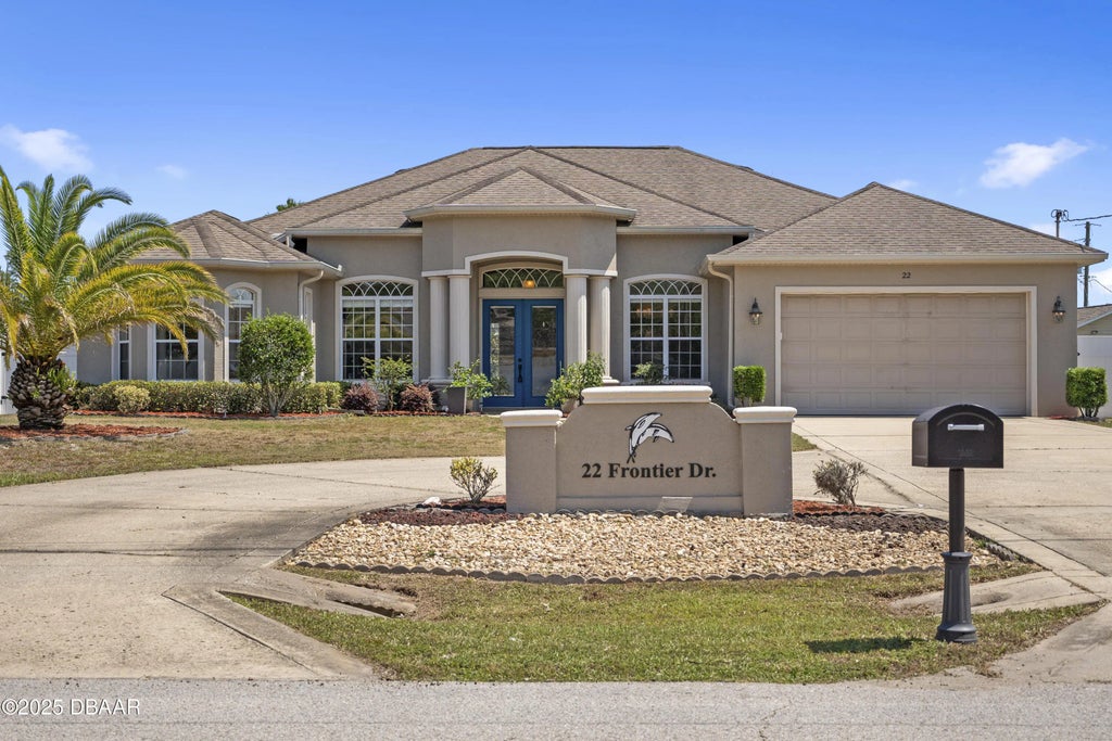 Former Model Home in Pristine Condition! Prepare to be amazed by the stunning details and upgrades throughout this meticulously maintained 3-bedroom, 2-bath split floor plan home. Offering a full family room, formal living room, dining room, and a dedicated office with elegant double glass doors, this home exudes sophistication at every turn. Designer features include double tray ceilings, decorative niches, double crown molding, extensive recessed lighting, and whole-home in-ceiling speakers, even extending to the back porch — all adding to the high-end feel. The beautifully designed eat-in kitchen boasts brand-new stainless steel appliances, granite countertops, a wet bar, upgraded wood cabinetry, & pantry. The spacious family room is a showstopper with built-in shelving and a cozy electric fireplace. The oversized primary suite features a luxurious en suite bath with a glass walk-in shower and a jetted Jacuzzi-style tub for the ultimate in relaxation. Two spacious guest bedrooms are thoughtfully positioned on the opposite side of the home for privacy and convenience, sharing a full guest bath. Step outside to enjoy the large covered patio with new ceiling fans and a fully fenced backyard offering plenty of space for outdoor living, plus ample room on the side to park your boat or toys. Centrally located in Palm Coast near parks, trails, shopping, and dining, this stunning home truly has it all!