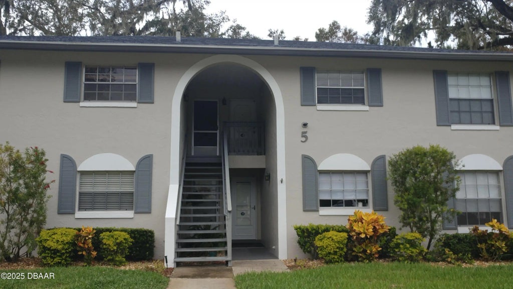 Thousand Oaks Condominium is a small condo community centrally located in Ormond Beach, and only a short drive to the beach. This second-floor unit features a cathedral ceiling, private screened in porch with a storage closet, 2 bedrooms and 2 full bathrooms, and in-unit laundry. Recently the entire interior was painted, and has a new stainless-steel refrigerator and dishwasher. Live in a park like setting with manicured grounds, large oak trees, and a convenient location off busy streets. The monthly fee includes pest control, basic cable and Wi-Fi, exterior painting, roof, building and flood insurance and, maintenance of grounds, and the pool. The large screened in pool stays cool in summer and has a covered social area with bathrooms. Up to two pets with no size restrictions and the new owner must own the unit for 1 year before renting. Solid concrete two-story building built in 1986 with bike storage, small pond, second parking spot, and a barbecue area.