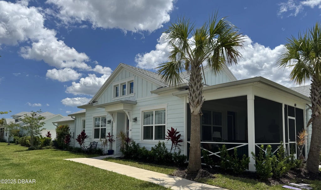 BEST LOCATION in Margaritaville Latitude Phase 5. This slice of paradise has a greenbelt uncompromised water view lot. Cement block Aloha Model 2/2 with French doors to den, single garage seal coated flooring, features tankless water heater, eight foot doors, screened porch and white plantation shutters. Stainless steel kitchen appliance package with washer/dryer. Luxury lighting fixtures, under cabinet lighting white kitchen shaker cabinets, granite counter tops, plank tile and carpet flooring, with full gutters around cottage. Amenities galore! Town Center for musical concerts, 2 outdoor resort pools, indoor lap pool and spa/sauna, fitness center. Pickleball, tennis, Fins ball and bocce ball. Large dog park pet paradise. Plus a beach club with an outdoor pool on the resort sandy Ormond Beach including bus transport. Two private eateries and bars waiting for you to live the life you have always dreamed of living! Owner licensed Realtor in Florid