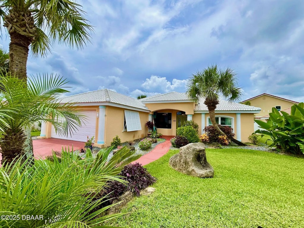 ORMOND BEACHSIDE!!! Located in Coquina Key near the Atlantic Ocean, this 3-bedroom, 2-bath, 2-car garage beachside home features private beach access for community residents. The house offers an updated kitchen with a Bluetooth refrigerator, spacious countertops, and unique penny flooring. An open floor plan connects a large living room to the veranda; the master suite includes double vanity, granite counters, dual closets, and a garden tub. The property comes with a pergola, Bullfrog premium spa, tile roof (2023), A/C (2020), water heater (2025), exterior paint (2022), upgraded electric panel with generator outlet, and white vinyl fencing. Not in a flood zone and equipped with shutters/awnings. Optional Spectrum cable/internet available via HOA at $702/year. Community lighting, stormwater, and garbage collection are covered in the annual tax bill. Come see this gorgeous home in an upscale coastline community!