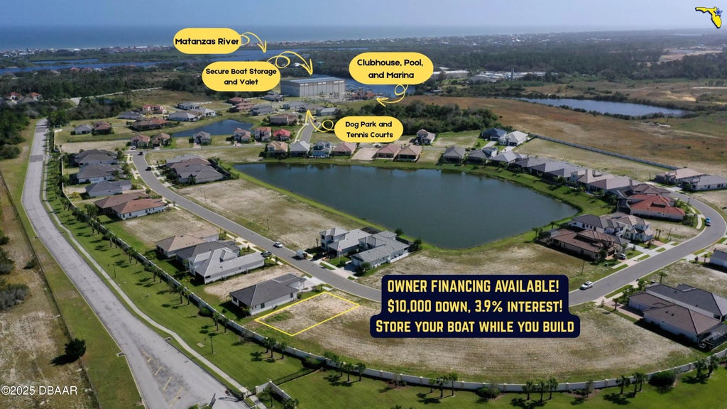 OWNER FINANCING AVAILABLE! 10,000 DOWN, 3.9 perc INTEREST. STORE YOUR BOAT TODAY - BUILD LATER! Welcome to Marina Del Palma, a newly developed community on the beautiful Matanzas River, perfect for boating enthusiasts. Marina Del Palma offers a private Dry Dock Marina where you can easily store your boat. Ready to hit the water? Just use the app to notify the marina staff, and they'll have your boat in the water with a bag of ice ready for your day's fresh catch. After a day on the river, unwind at the luxurious clubhouse or take a dip in the community pool. This vacant lot is the perfect spot to build your dream home. A survey is available to help you start planning. Act quickly before the next boater claims this opportunity!