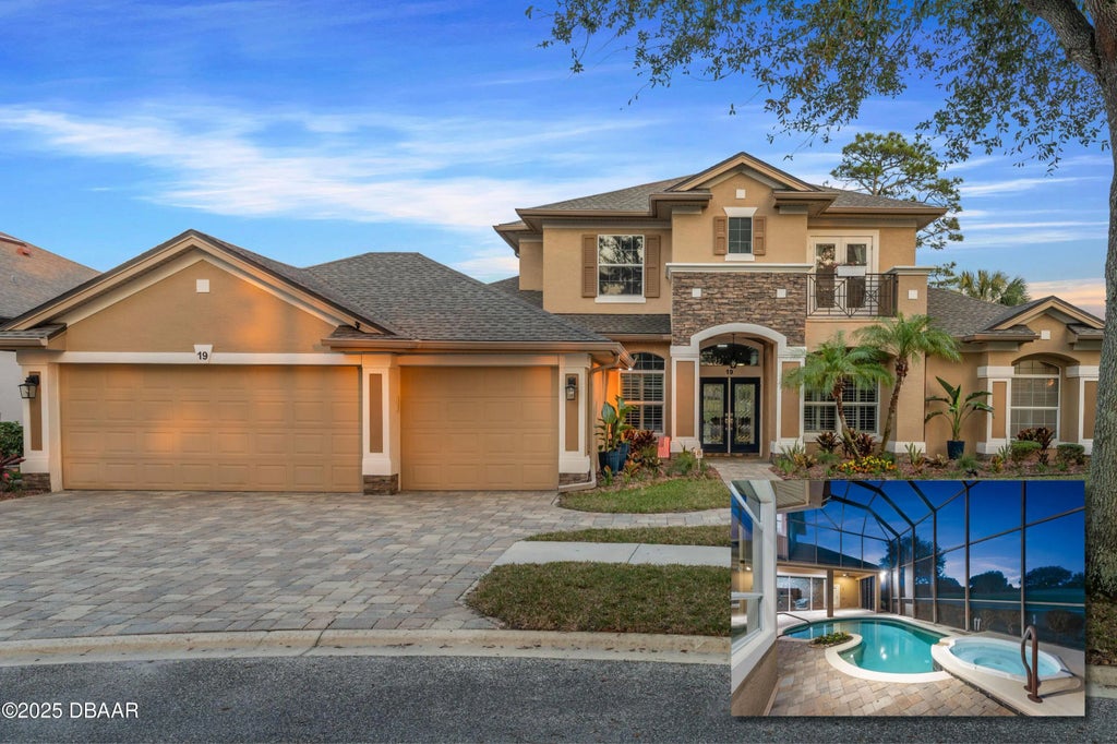 Perfectly Priced to Sell! This elegant Arthur Rutenberg-built pool home in Grand Haven, one of Palm Coast's premier gated communities along the Intracoastal, offers 4 bedrooms, 3 full baths, 2 half baths, & a 3-car garage on a quiet cul-de-sac with a serene conservation area. Enjoy panoramic golf course views & sunrises from both levels of outdoor living space. Inside, an open layout with pocket sliding glass doors creates seamless indoor-outdoor flow, ideal for entertaining. The chef's kitchen features a built-in refrigerator/freezer, 48'' Jen Air gas cooktop/oven, & poured concrete countertops, opening to a stunning stone-accented family room. The main-level owner's retreat offers pool access & a spa-like bath, plus a dedicated office. Upstairs includes a flex space, balcony, ensuite bedroom with balcony access, & two additional bedrooms. Updates include new roof (2021), Generac generator (2020), HVAC (2020/2022), tankless water heater (2019), central vacuum (2025), & 3M window film.