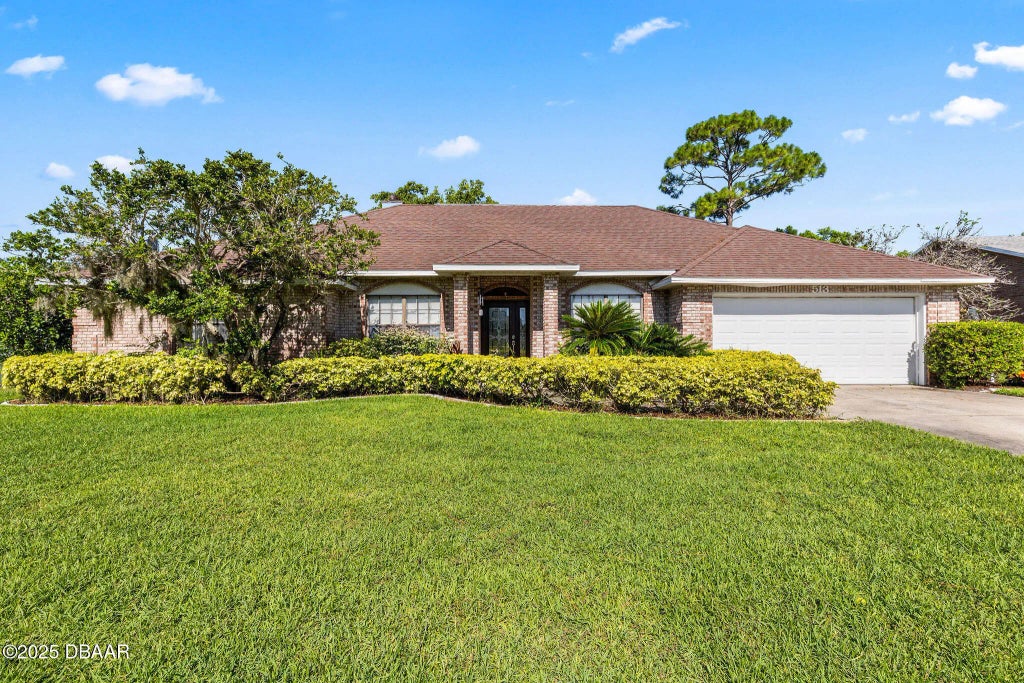 NO FLOODING! This beautiful 4-bedroom, 2-bathroom block home with a brick façade sits directly on serene Sun Lake and offers an open, spacious floor plan. The eat-in kitchen flows seamlessly into a large great room featuring a cozy fireplace and stunning lake views, which can also be enjoyed from the master bedroom. Additional living spaces include a formal front living room—perfect for a den or office—and a formal dining room. The home also features an inside laundry room and a generous two-car garage. Located within the desirable Port Orange school district, it's conveniently close to shopping, parks, dining, I-95, and the local favorite, Neighbors Ice Cream. Recent updates include a full plumbing re-pipe in 2024, HVAC replacement in 2017, and a new roof in 2014. A termite bond is also in place, offering added peace of mind. All information taken from the tax record, and while deemed reliable, cannot be guaranteed.