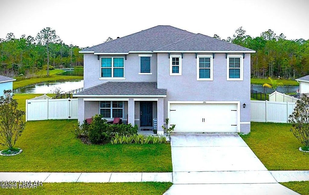 5 BEDROOMS + 3 LIVING ROOMS!! Large fenced yard sits on a pond with fountain and has irrigation sprinklers. Enjoy the wildlife on the water while sipping coffee on the patio. The open floor plan of this newer construction 5/3/2 offers a large center island kitchen with SS appliances, granite countertops, and a walk-in pantry. The main level also boasts a flex room, bedroom, bath and under the stairs storage. Upstairs you will find the spacious primary bedroom with his and her walk-in closets. There are 3 more bedrooms, another full bath, and another living area which could be enclosed for a 6th bedroom, but currently is a playroom and movie room. If that's not enough the community offers plenty of playmates and a community pool. The Gazebo is not included but is negotiable. Square footage is received from Volusia County property appraiser records. All information recorded in the MLS is intended to be accurate but cannot be guaranteed. Agent is part owner.