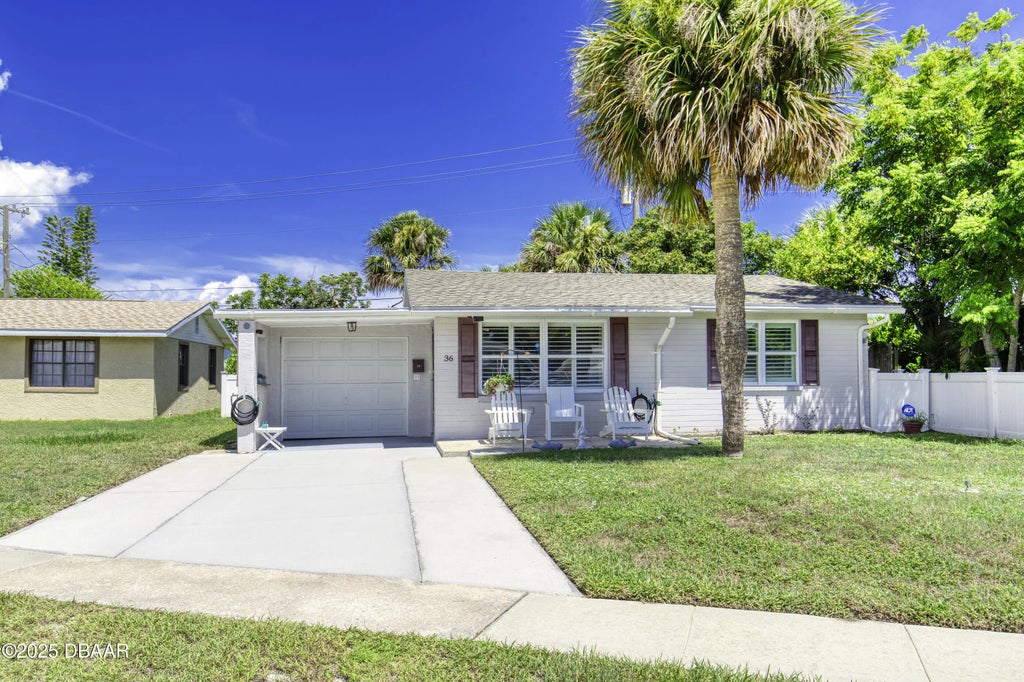 Enjoy peace of mind with a BRAND NEW ROOF.. welcome to your perfect getaway - a charming 2-bedroom, 2-bath beachside beauty in the sought after beachside community of Ormond-by-the-Sea. This Turn-key coastal retreat, offered FURNISHED, and located just steps from the beautiful beach or river! You'll find elevated coastal vibes through out. This beautifully remodeled home has new bathrooms and a kitchen with granite counters, a gas-stove, and upgraded stainless steel appliances. The flexible back-room, currently set up as a dining area, this flex space gives additional room for comfortable entertaining. A 1 car garage also provides additional space for vehicles, beach toys and storage. the property includes a washer and dryer for your convenience.