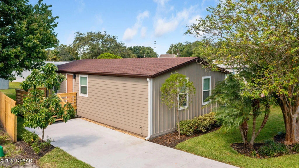 Totally Updated & Move‑In Ready in Ormond Beach- No Lot Fees, No Maintenance Fees! Welcome to this beautifully renovated double-wide manufactured home, perfectly situated on its own land in the heart of Ormond Beach. From top to bottom, every detail has been updated for style, comfort, and peace of mind including a new roof, new flooring, new lighting, updated electric, and completely refreshed bathrooms. The spacious, modern kitchen features brand-new cabinets, sleek appliances, a center island perfect for meal prep or gathering with friends, and an open design that flows seamlessly into the living room. The cozy electric fireplace adds a warm, inviting touch to the space. This home offers 2 bedrooms and 2 full bathrooms, along with the convenience of an indoor laundry area. Step outside to enjoy the brand‑new deck and a generously sized lot, ideal for entertaining, relaxing, or even starting a garden. With no lot fees and no maintenance fees, you can enjoy the perks of ... homeownership without the extra costs. Whether you're looking for a full-time residence, a seasonal retreat, or a lowmaintenance investment, this property checks all the boxes.