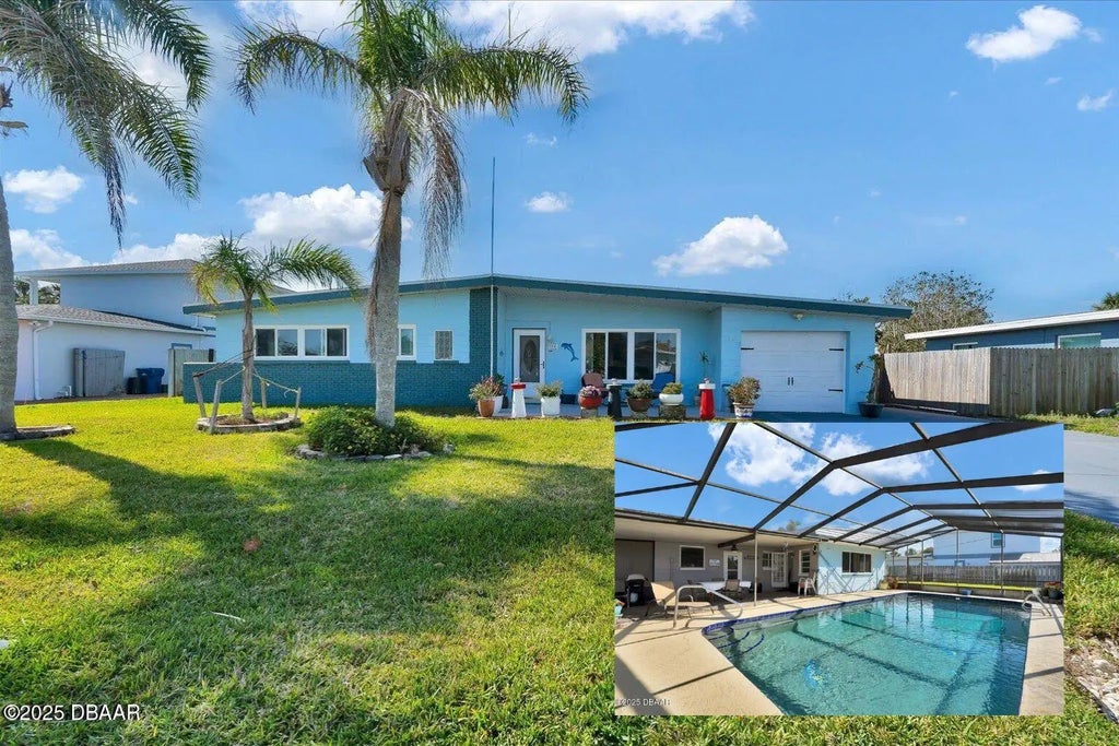 Located between the Atlantic Ocean and the Intracoastal Waterway, this 3-bedroom, 2-bath POOL home offers the perfect blend of location, functionality, and Florida charm. Recent updates include new drain lines (2025), electric panel updates (2025), septic tank serviced and pumped (2025), roof (2021), BRAND NEW water heater, Refrigerator (2025), most windows upgraded to impact resistant(2020) providing peace of mind for years to come. Inside, you'll find a bright Florida room overlooking a large screened-in pool and covered lanai—ideal for entertaining or relaxing in your own oasis! The original terrazzo floors lie beneath the current flooring offering potential for restoration. The fully fenced backyard includes an outdoor shower and plenty of space to enjoy the outdoors, even park a boat. An oversized 1-car garage provides added storage and convenience. This home has been lovingly maintained by the same owners for over 40 years. Located at the end of a quiet peninsula in the sought-after Ormond by the Sea community, you're just steps from a neaighborhood beach walkover to a no-drive beach and a short stroll to a riverfront park with a fishing pier and kayak launch. Enjoy coastal living with easy access to Daytona Beach and just an hour to Orlando's theme parks. All information is deemed reliable but not guaranteed.