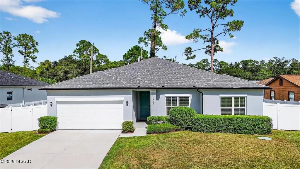 Motivated Seller! Built in 2023, this stunning 4 bedroom, 3 bathroom home combines contemporary design with everyday comfort, all just minutes from the beach, shopping, dining, and entertainment. Step inside to find an open floor plan with soaring ceilings, abundant natural light, and stylish finishes throughout. The gourmet kitchen features granite countertops, stainless steel appliances, and a large island—perfect for entertaining or family gatherings. The spacious primary suite offers dual walk-in closets and a spa-like bath with two vanities, and walk-in shower. With three additional bedrooms and two more full baths, this home provides plenty of space for guests, family, or even a home office. Enjoy Florida living year-round with a covered patio and private backyard, ideal for outdoor dining, barbecues, or simply relaxing in the sunshine. Don't miss the opportunity to own a brand-new home in a prime coastal location!