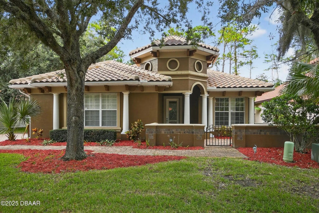 Spacious, inviting home in a beautiful gated community. If you enjoy cooking or entertaining, or just stretching out this home will suit you perfectly! Wonderful features: Granite countertops, quality all wood cabinets, double island kitchen with pantry, built-in bar area overlooking the main seating area, gas fireplace, vaulted ceilings and miles of tile! Lots of architectural features with trey ceilings, curved wall from the foyer to the dining area & custom lighting. The primary suite has a bonus area, suitable for a reading nook, TV viewing or perhaps an office area. Home comes with appliances, including washer & dryer, gas fireplace. and a full house generator run by an inground propane tank. HOA maintains the yard, Ormond Beach is a small coastal town with great restaurants, shopping, parks & cultural events. County beaches are close for early morning walks or twilight strolls. The home is located west of 95 in a low-risk area for flooding. Call to set up your showing todaythere are few homes that offer the peace and tranquility of 75 Apian Way!